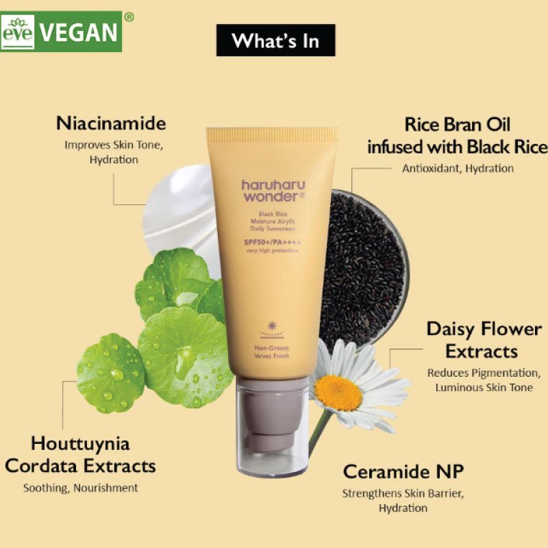 Rice Bran Oil, Niacinamide, Daisy Flower Extract, Ceramide NP, Houttuynia Cordata Extract