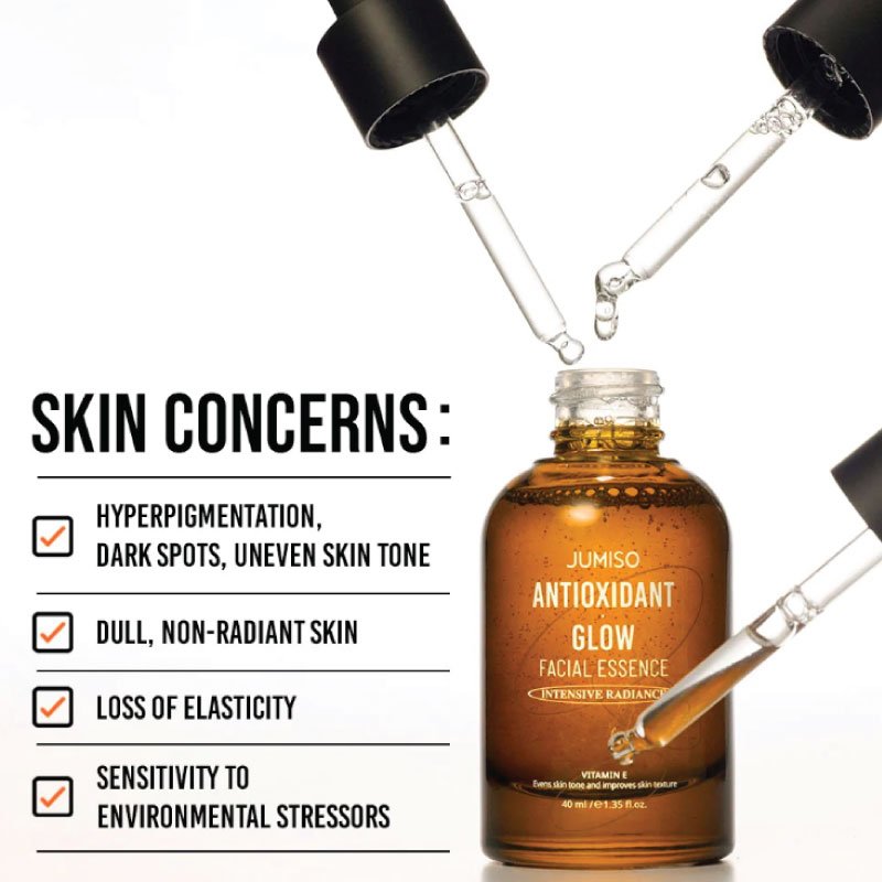 Jumiso Antioxidant Glow Facial Essence, with its rich antioxidants, can help improve skin radiance, moisture levels, and skin elasticity.