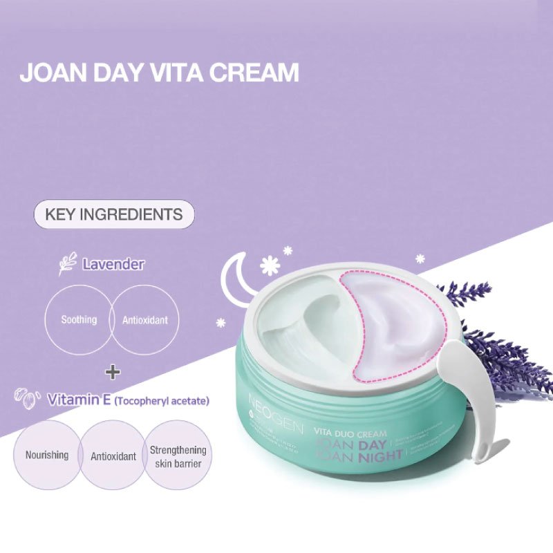 Neogen teamed up with beauty influencer Joan Kim to create the ultimate day and night cream duo. The two different yet complementary formulas are conveniently housed in one jar.