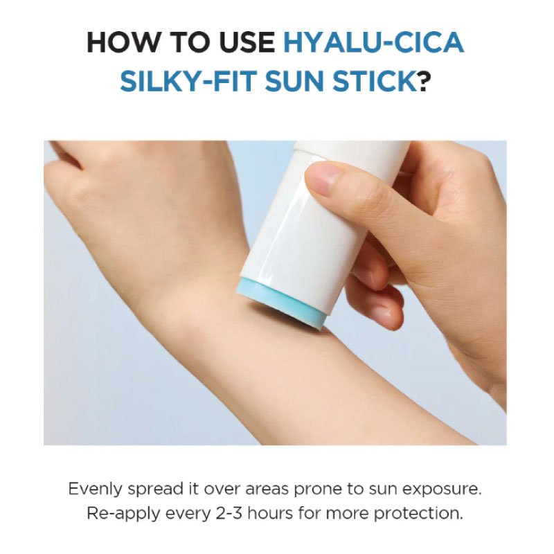 SKIN1004 Hyalu-cica Silky-fit Sun Stick 20g provides lightweight sun protection with hyaluronic acid and centella asiatica extract for hydrated and soothed skin.